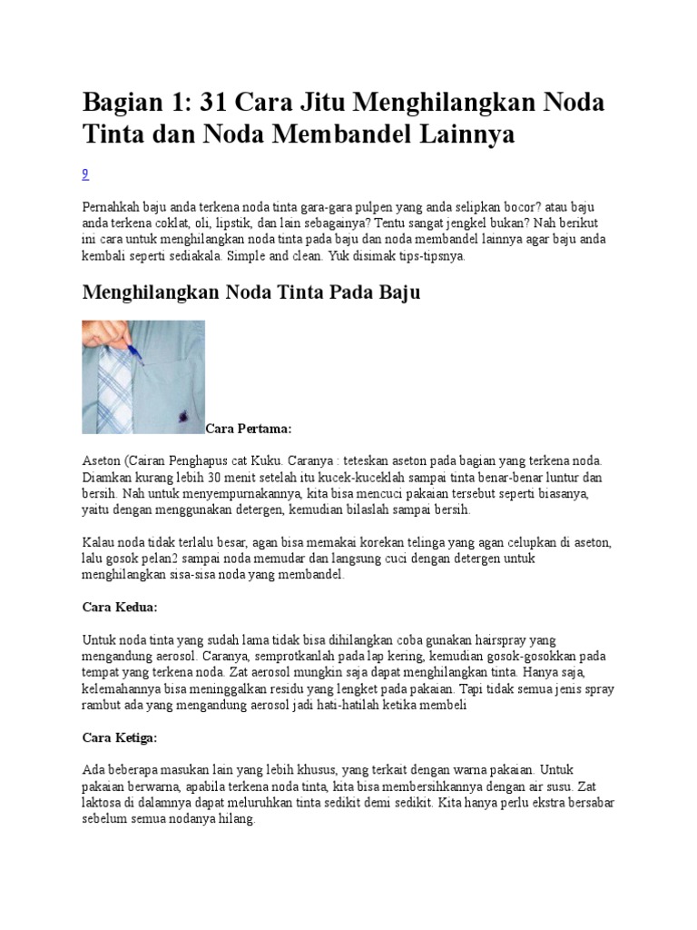 Bagian 1 31 Cara Jitu Menghilangkan Noda Tinta Dan Noda