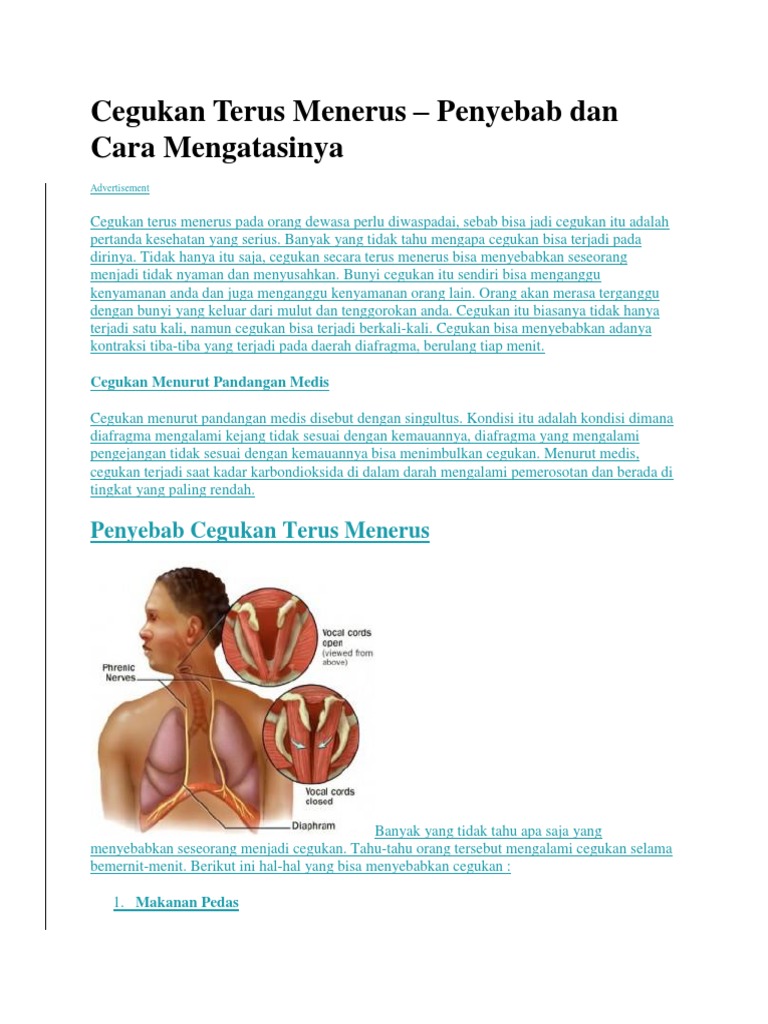 Penyebab Dan Cara Mengobati Cegukan Terus Menerus Dengan