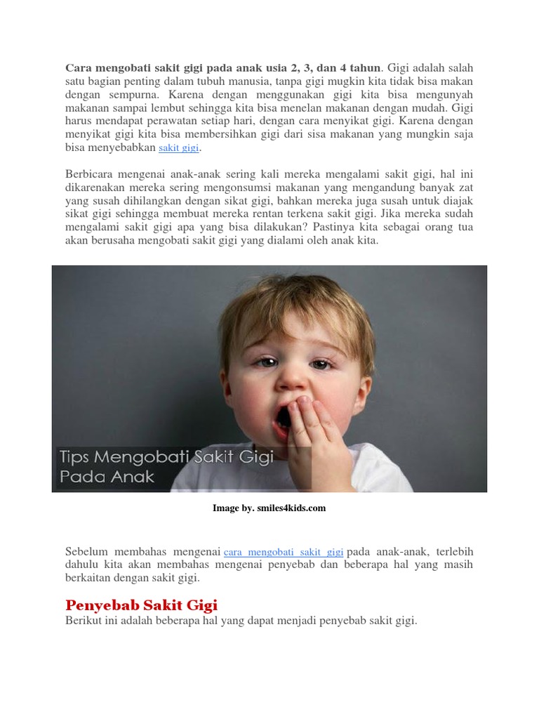 Cara Mengobati Sakit Gigi Pada Anak Usia 2 3 Dan 4 Tahun
