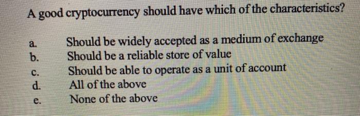 They provide you safest platform with just an identification process, you can start to trade any digital currencies without much effort. Currency is system of money, legal tender,cash,digital asset that is generally accepted in use as a medium of exchange or a store of value. The stock market continues to grow as a result of large technology companies. Both have obvious monetary characteristics, by virtue of gold's history and bitcoin's original vision (and its name). Thus, a cryptocurrency is a medium of exchange (like ordinary money) that exists in the digital world and uses encryption that ensures the security of transactions. Referring to yermack (2013), bitcoin does not seem to establish itself as an account unit or a store of value. Its state is maintained through distributed consensus. Another cryptocurrency may be good for selling one state currency (e.g. What are the characteristics of a good forex trader? A cryptocurrency is not issued by a jurisdictional authority or other party. This contributes to a crucial element of a true cryptocurrency: Many cryptocurrencies are decentralized networks. More than a dozen other cryptocurrencies outperformed.